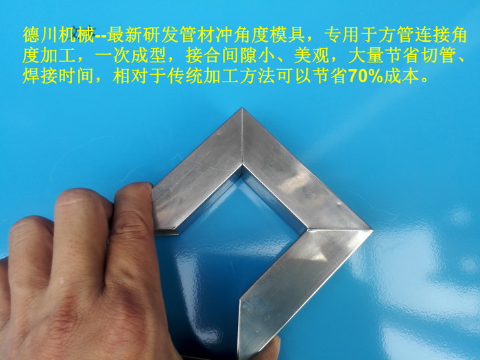 德川機(jī)械--最新研發(fā)管材沖角度模具,專用于方管連接角度加工,一次成型,接合間隙小、美觀,大量節(jié)省切管、焊接時間,相對于傳統(tǒng)加工方法可以節(jié)省70%成本。...