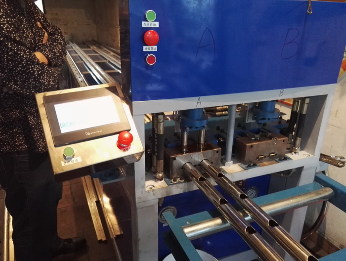 德川機(jī)械—數(shù)控全自動(dòng)沖孔機(jī),38圓管沖25.5孔,漳州用戶現(xiàn)場(chǎng)