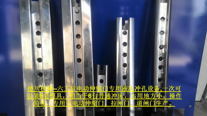 六工位電動伸縮門專用液壓沖孔設(shè)備,一次可以裝6套模具,相當(dāng)于6臺普通沖床,占用地方小,操作簡易,專用于電動伸縮門、拉閘門、道閘門生產(chǎn)。...